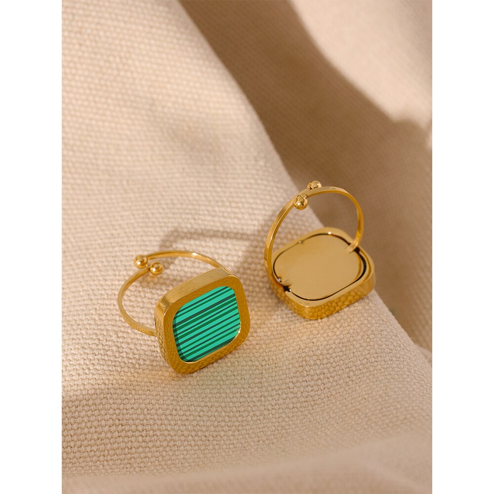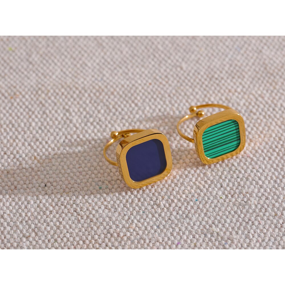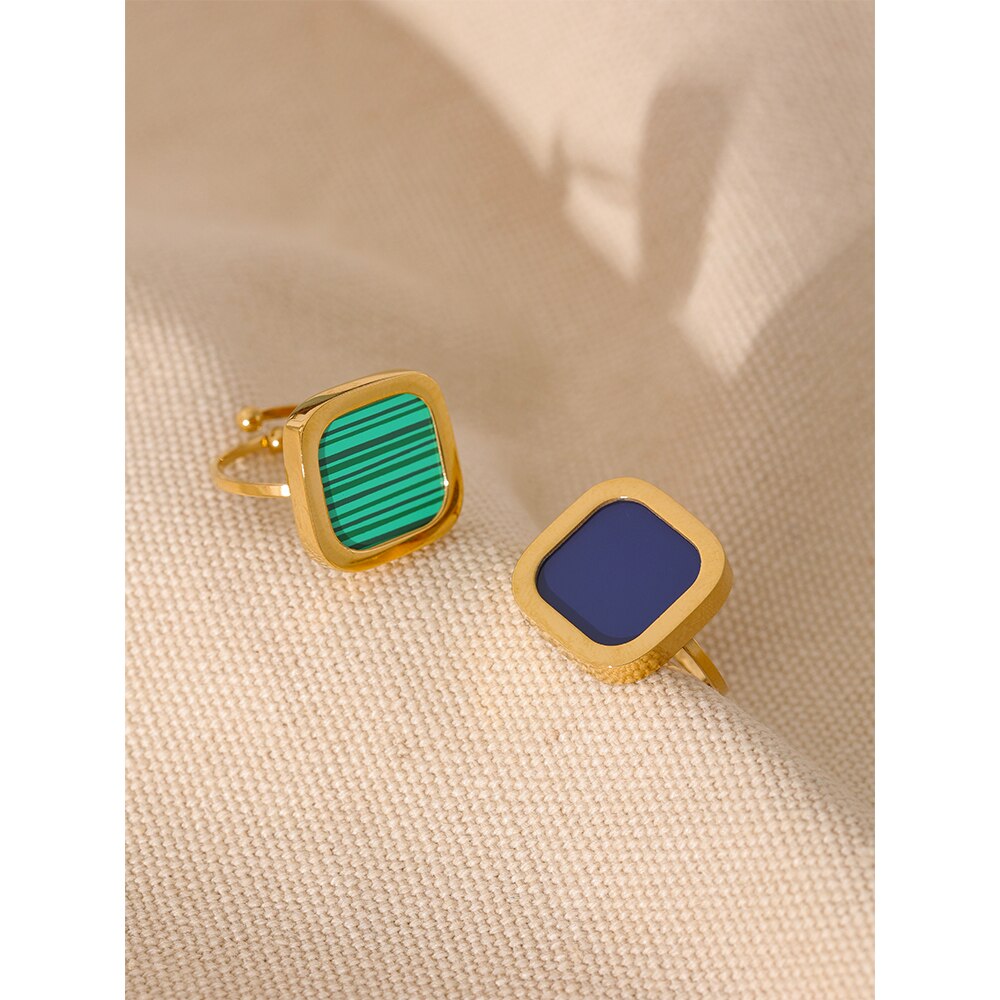 Apresentando o nosso elegante Anel Banhado a Ouro 18K, acentuado por um quadrado acrílico moderno e ajustável para destacar sua elegância.