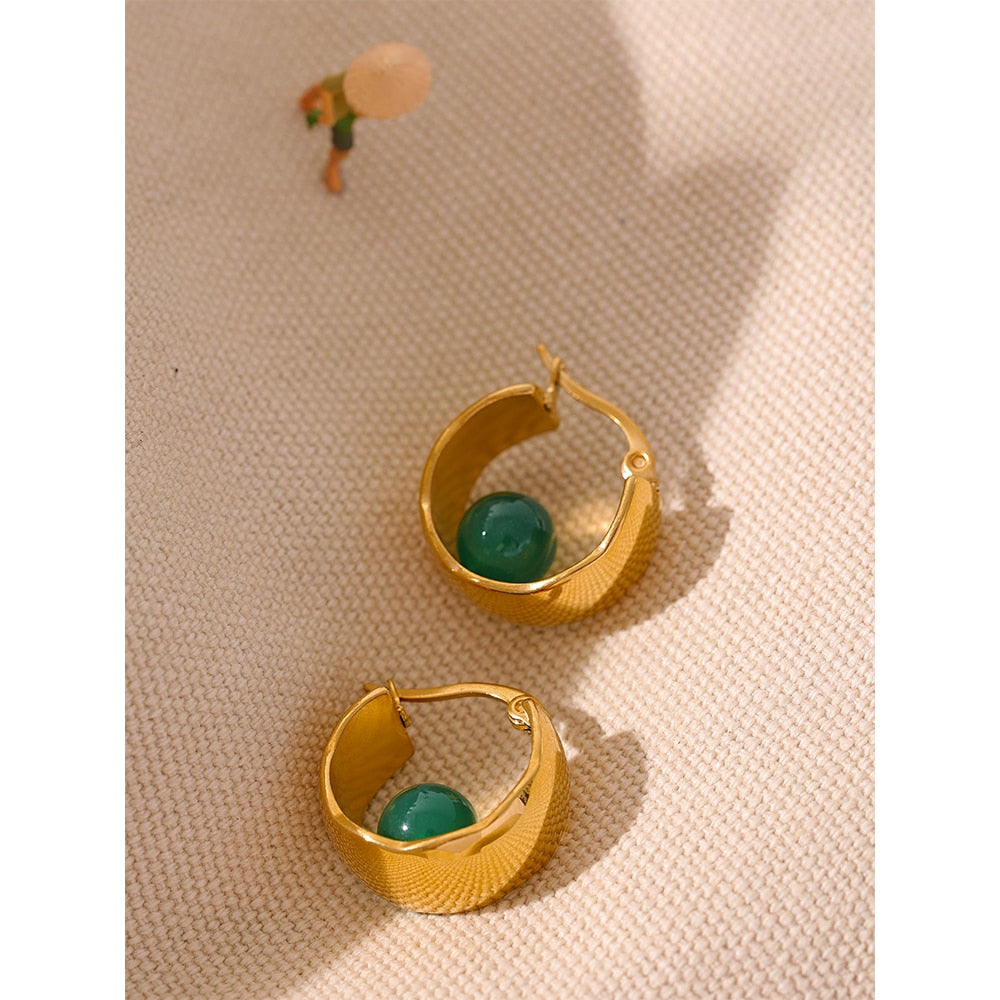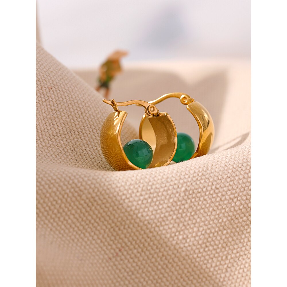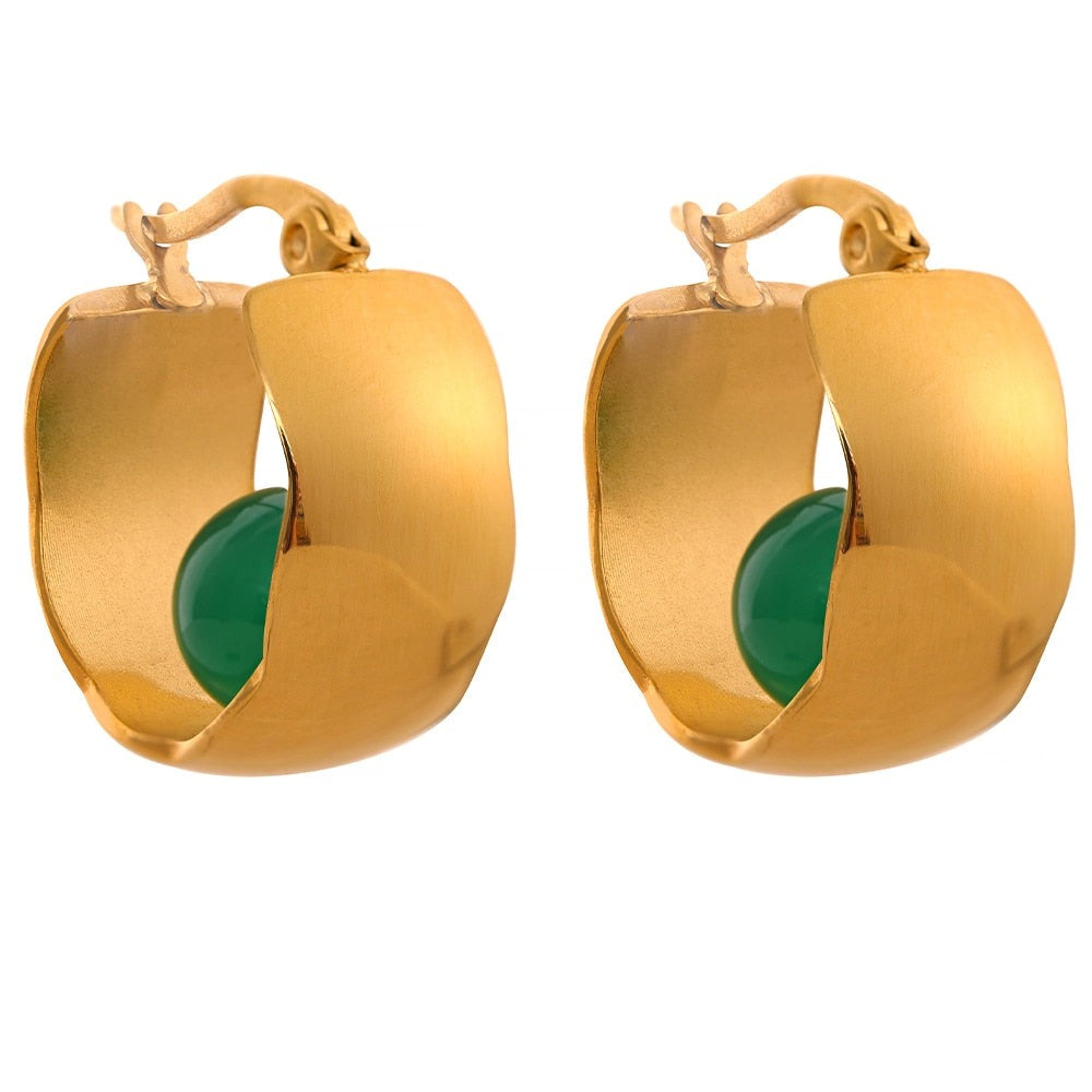 A pedra de ágata adiciona um toque de cor e elegância, criando um contraste cativante com o metal da argola.