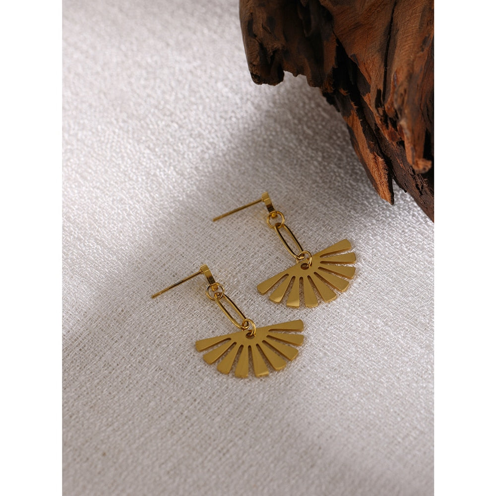 Brinco Long Drop Geométrico em Ouro 18K