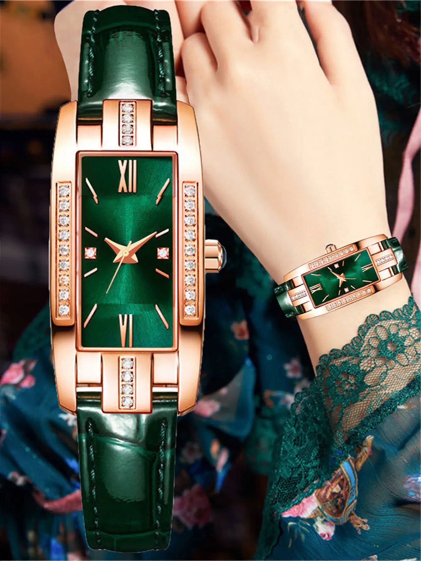 O Conjunto Relógio e Joias Ambra oferece cinco peças deslumbrantes que incluem um colar, brincos, anel, pulseira e um relógio, disponíveis nas cores verde e vermelha. Cada peça é uma obra-prima de elegância e estilo, perfeita para complementar seu visual em ocasiões especiais.