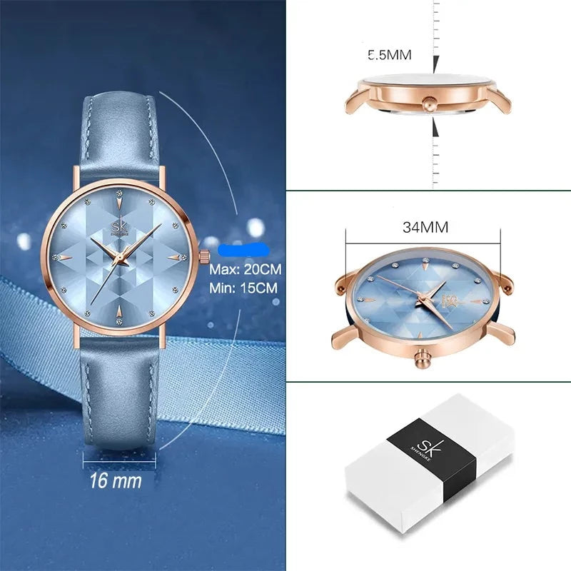 O Relógio Sophie Minimalist oferece quatro estilos minimalistas para escolher: preto floral, azul mesh, azul claro ou preto. Cada estilo combina simplicidade e elegância, adicionando um toque de sofisticação ao seu visual diário.
