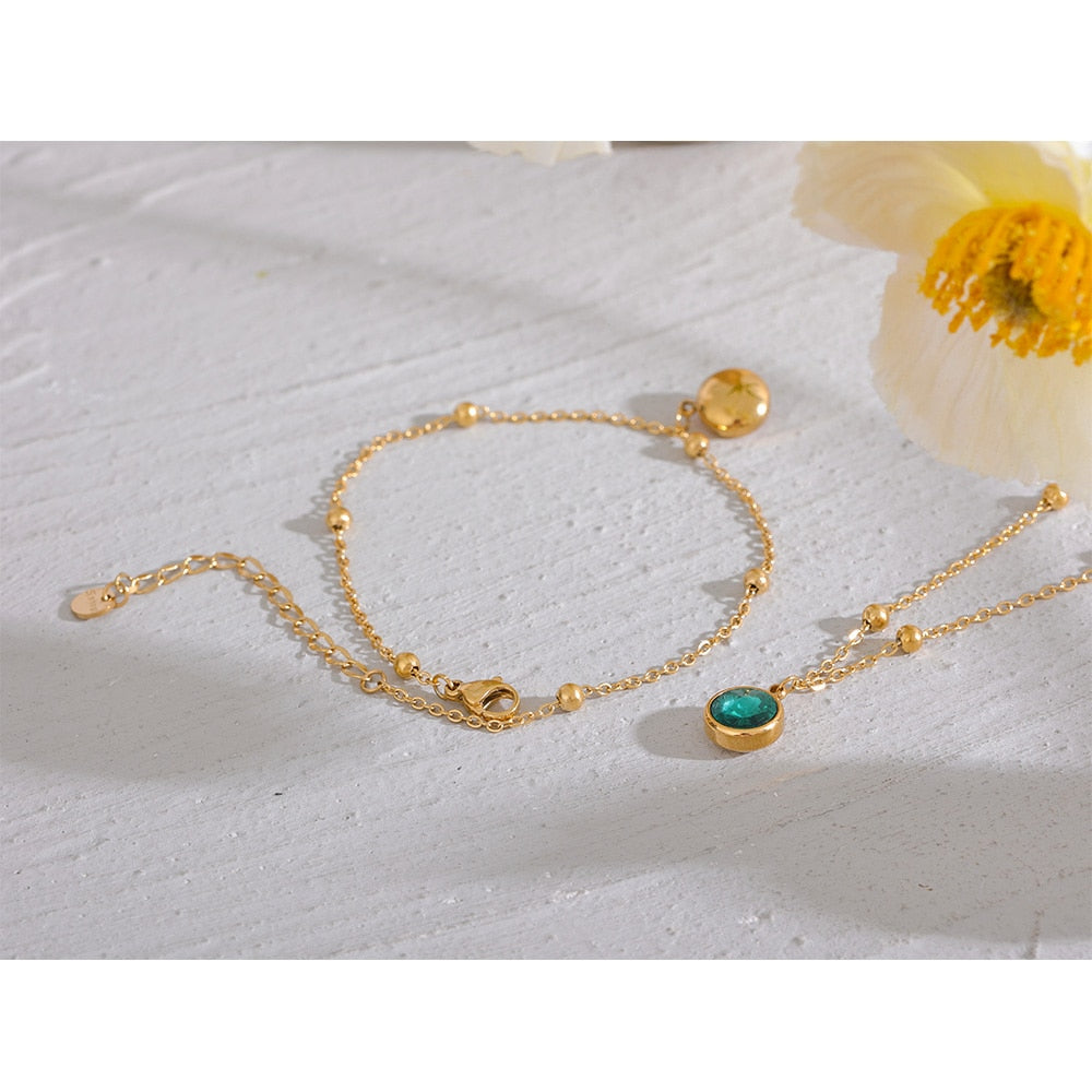 A Tornozeleira Arya com Zircônia Solitária e Banhada é o toque de sofisticação que seus tornozelos merecem. Disponível em cores verde ou pink, esta tornozeleira combina o brilho das zircônias solitárias com um acabamento de banho que adiciona uma pitada de cor e estilo à sua aparência.